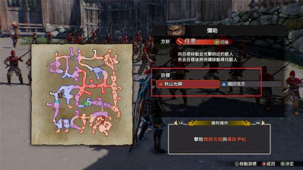 今川军出现后,在左下角找到浓姬,击杀冈部元信,右下角击败今川义元,完成这两个任务。