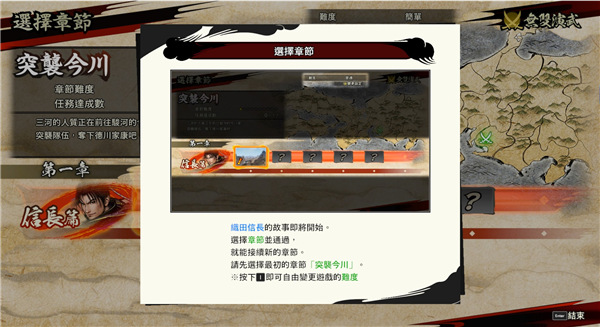 击败义龙后,今川军出现,在地图中部击杀100个小兵。大门打开后,击杀两个大众脸武将。