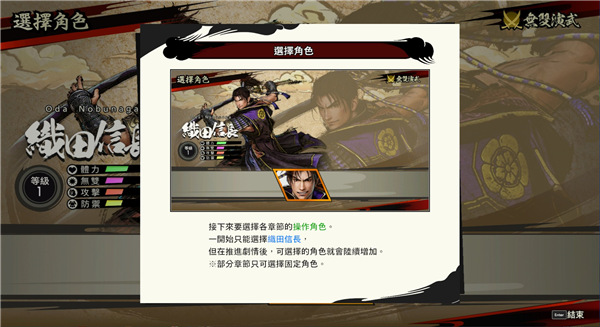 8、选择可操控角色,初始角色为织田信长,在这之后还可以解锁更多武将人物;