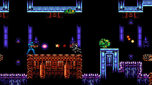 每个关卡都有特点非常鲜明的敌人与场景,色调也非常容易被区分开。看似贫瘠的像素点阵也描绘出了紧致的未来世界,游戏的过场动画也并不粗糙,单单就于点阵图美术而言还是比较优秀的。