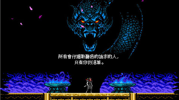 主角的能力需要一步一步地解锁,等弹反与突进解锁之后难度开始提升(没有下蹲比较蛋疼),总体偏于硬核,有一定上手难度。介于其怀旧像素风格,可以令那些玩过红白机时代一些如《忍者龙剑传》、《赤影战士》、《特救指令》等经典动作游戏的玩家容易产生共鸣,融合并致敬这些游戏的特色也是这款游戏的一大亮点。游戏整体基调偏严肃与悲壮、与《信使》的诙谐幽默截然不同,这两款游戏有比较是必然的,但也是各有千秋。游戏的故事性不足,因为剧本和对话没有充分展开(也许这种游戏不看剧情,单纯给你一个砍人的理由),另外游戏配乐也不错,能拿得出手,配合对应关卡氛围。