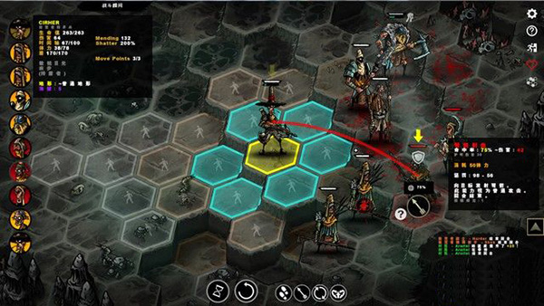 当可以攻击的时候,射击抛物线会以绿色显示,同时,敌人所在格子还会显示命中率。