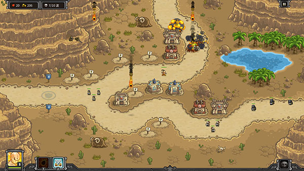 金钱总计:本关共3种敌人,沙漠暴徒×113,沙丘入侵者×37,沙犬×158,理论上获得金钱520+113×5+37×16+158×5=2467请大家确保过关阵形不超过此花费。
