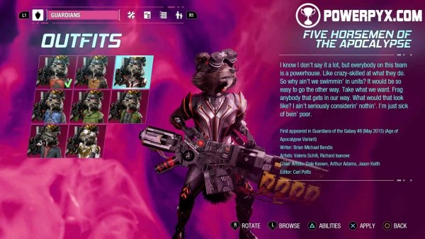 这一角色首次出现于漫威预览)。他是一位智能的拟人化浣熊,为一位射击高手,并精通战术。他的名字及性格来自披头四乐队的1968年歌曲。