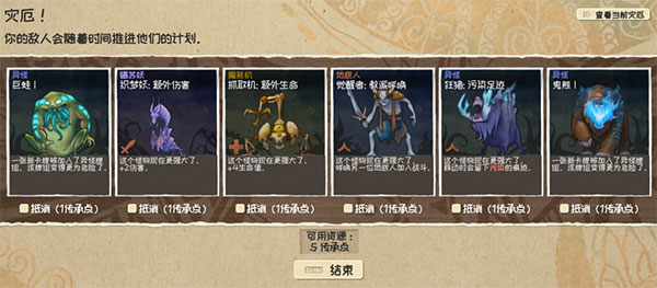 当完成一段故事后玩家都会获得一定的“传承点”,传承点即代表了你所积累的名望,可以用来招募新的队友或者遏制怪物的异变。每过一段时间整个世界的怪物都会变得更加残暴,同时还会有新的怪物种类出现。玩家可以使用在此前经历中积攒下来的传承点遏制其变化,也可以任由改变发生。