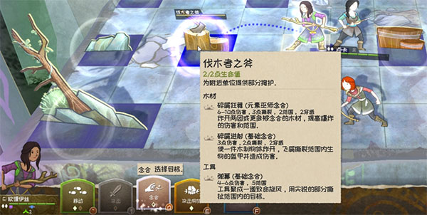 《漫野奇谭》的战斗和其他战棋游戏相比,最大的特色莫过于对场景中环境要素的利用。除了大部分环境要素都可以当掩体外,巫师职业还可以通过“念合”技能最大限度利用掩体。当对附近的木头制品使用念合,将能够引爆木头,对周遭的所有敌人进行碎片攻击,造成大量伤害并摧毁护甲;当对环境中冒火的地方使用念合,将可以操控火焰的轨迹,形成火焰环境。念合技能是巫师的核心要素,也是游戏战斗中反败为胜的关键。