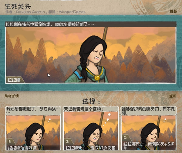 在确认好背景故事后,这名角色的所有冒险都会记录进他的经历中。而当角色退休或阵亡后,其传承也会被后继者继承。他的故事或许告一段落,但关于他事迹的赞歌将被永远歌颂。在第一个故事中,我创建了博学的领袖猎人、浪漫的学者战士、浪漫的和平使者巫师三人。博学的猎人能够运用智慧掌握大局;身为学者的战士既能通过知识杀敌,又能富含骑士精神的帮助弱小;仁慈的巫师既能运用魔法毁灭敌人,也能通过治疗救助盟友。