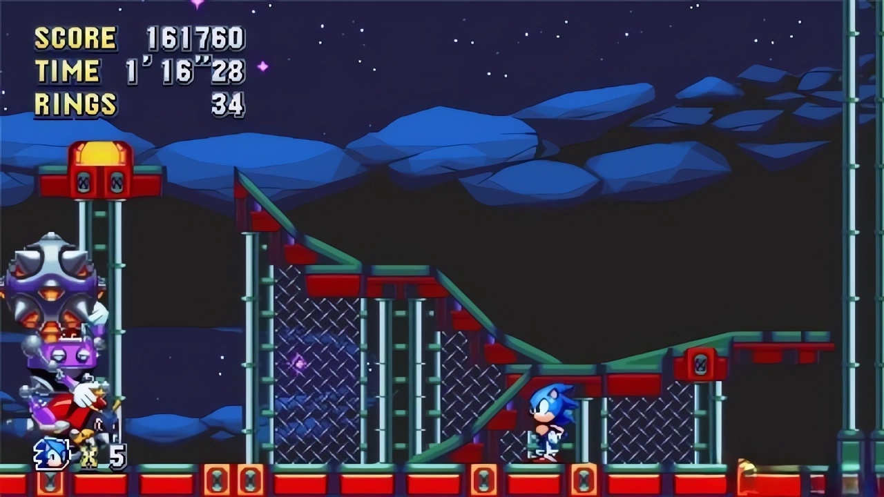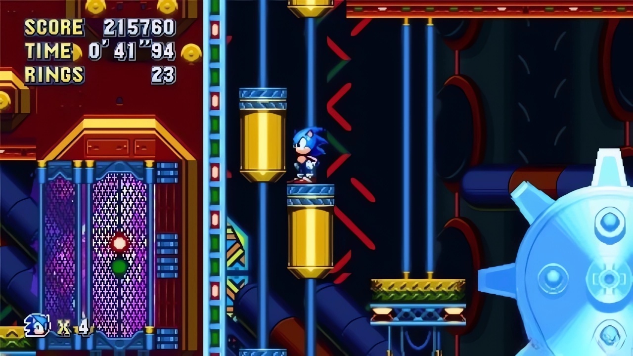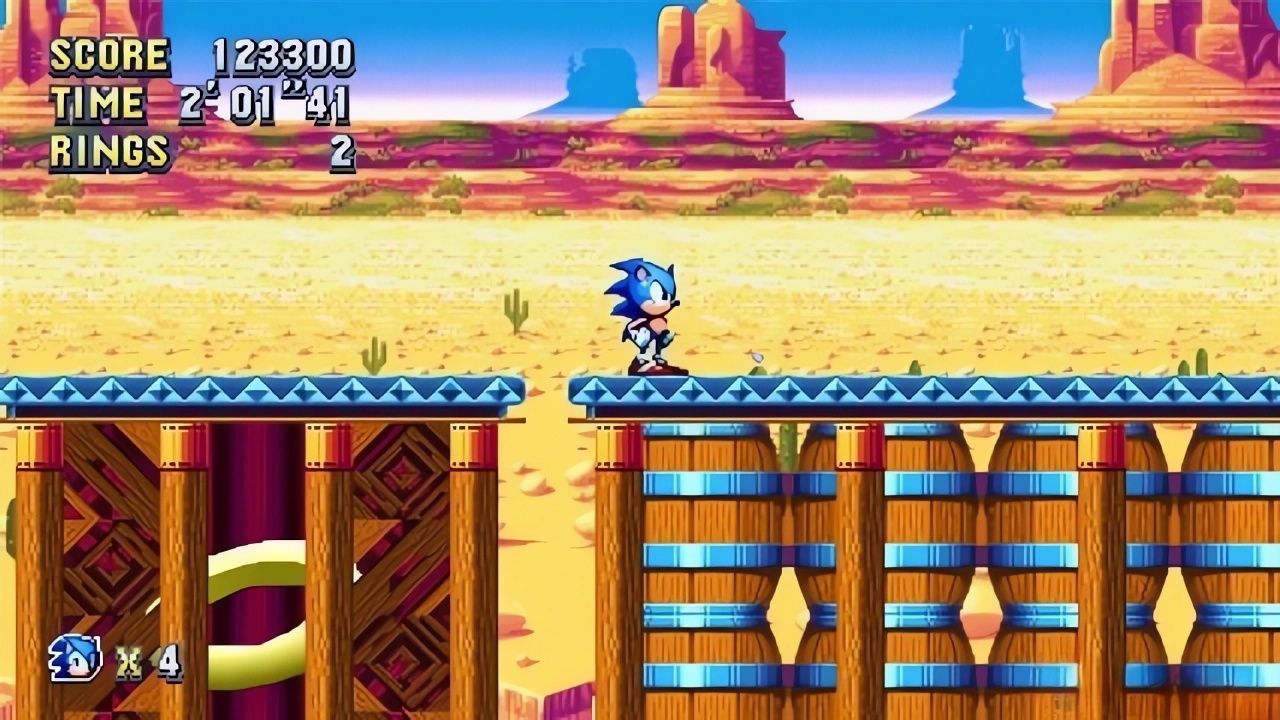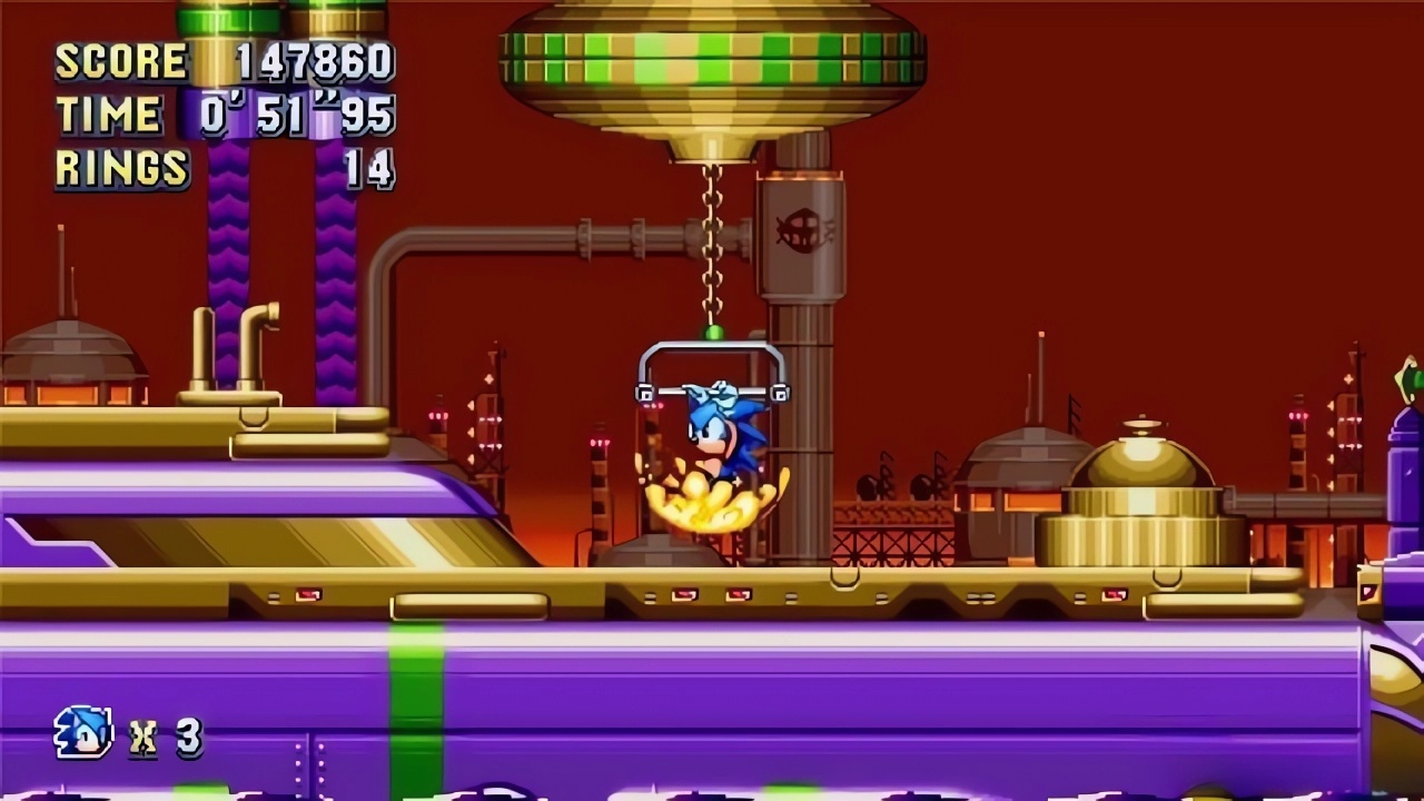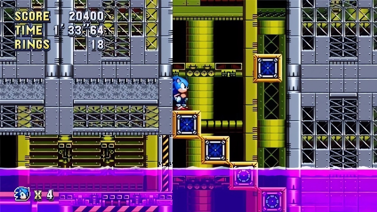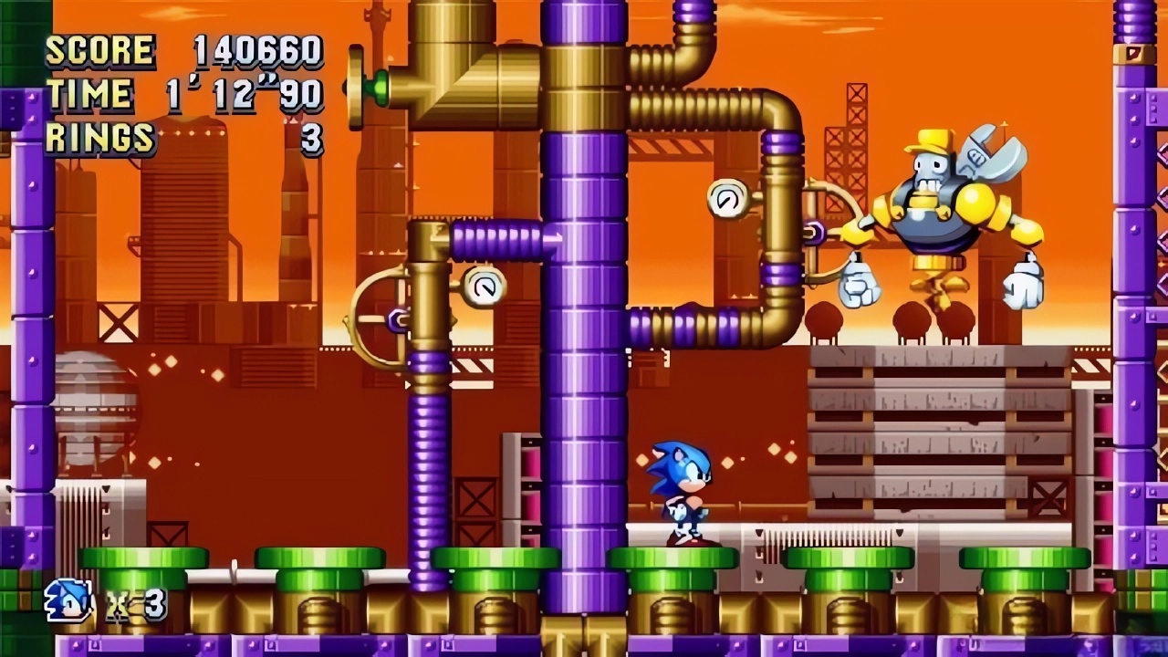 索尼克狂欢的画面很好的还原了MD时代的16位像素风,粗砺且绚烂,每一帧都饱含动感与想象力,当然对比之后,我们还是可以发现这并不是完全的还原,在色彩对比、细节元素、帧数等方面,比之当年的技术指标《狂欢》还是有了全面的加强,这种在细节上“润物细无声”式的改进令人很满意,一方面仍可以轻易勾起玩家们那份久远的情怀,另一方面也弱化了时代的隔阂,让当今的玩家可以更轻松的适应游戏。