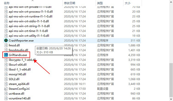 2、在游戏根目录/bin文件夹中,双击Griftlands.exe就能进入游戏;