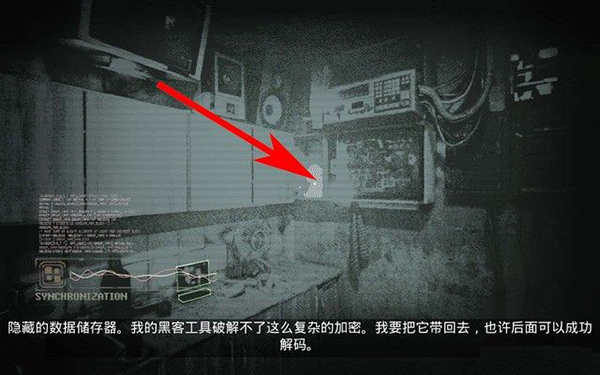 进入厨房,如下图箭头所指,在柜子中可以找到数据储存器,