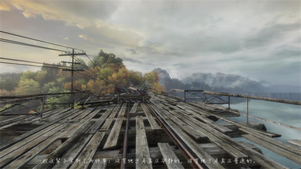 出门跟随魂魄去原本上锁的水电站,发现门开了。进去转动中间涡轮的阀门,让其停止工作。原路返回至没锁的房子门口,发现因为水位降低,左手边的石栏可以通过了。走过石栏,往右继续前进,途中经过两座小桥,最后来到烧毁的房屋前。