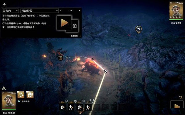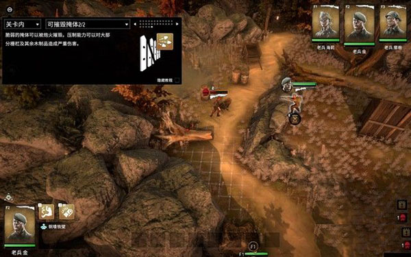 除此之外,急救技能可以治疗士兵,手雷能攻击掩体后面的敌人造成范围伤害。