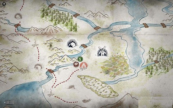 营地旁边的两个图标分别代表随机事件(奖励资源)和商人,而上面的地标就是任务目的地。