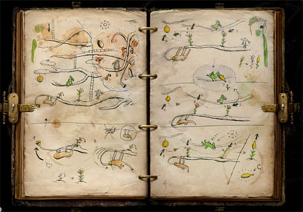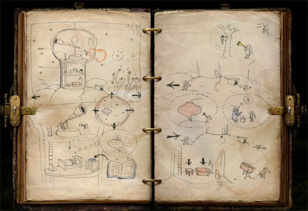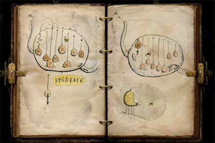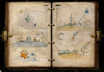 往右走到场景五。用小喇叭听山的声音,把幽灵一样的东西全拔出来。这时候野人就会让你讲故事给他看,按官方攻略上的顺序摆出四格小电影(这里不看攻略自己摸索超级有意思),让两个小人吃上饭,食物分别是鱼、马、象、猪(蘑菇可多次使用)。完成小电影野人会送你小剪刀,拿去Part3剪了矿泉水瓶,然后等着宇宙飞船完成。然后可以起飞了,还剪刀的时候拿到一个成就。