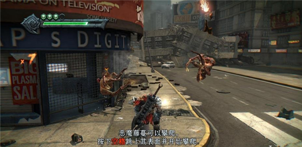 按照之前的方法打没血了QTE秒杀,然后跳到左边的房顶,从房顶跳到另一栋大楼里。