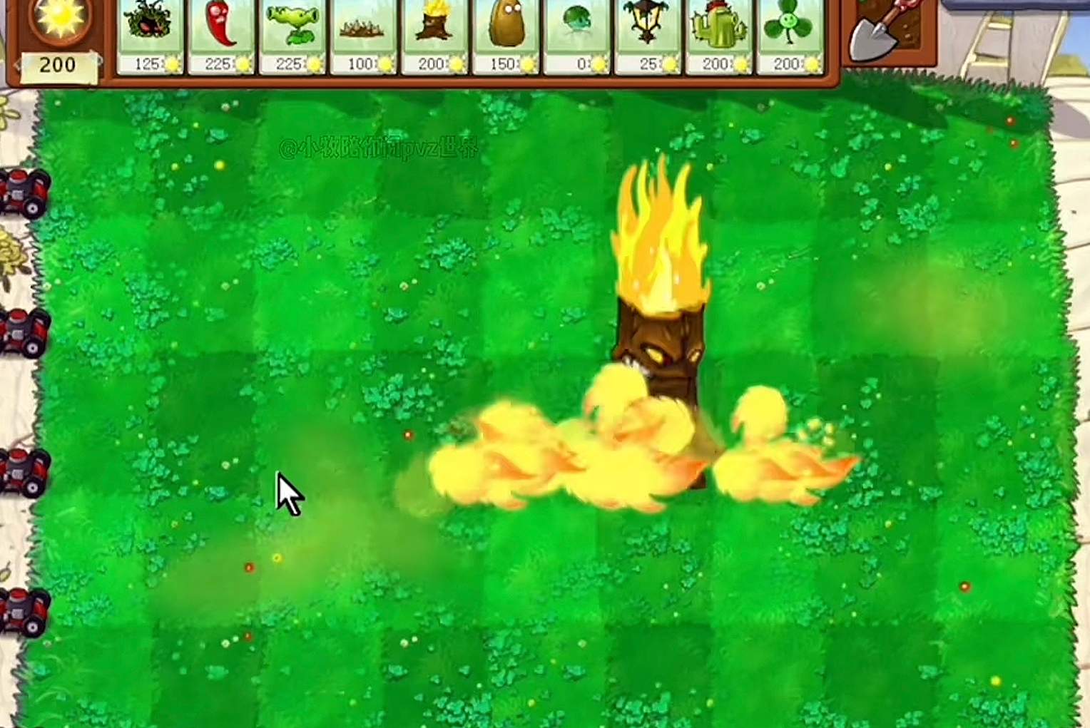 5、火炬树桩:火炬树桩会从细高和扁矮两种状态反复切换,当他变得细高时会召唤三颗火球。