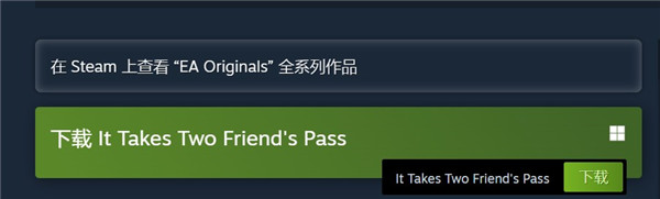 只要在双人成行的steam界面下载——It Takes Two Friend's Pass即可。