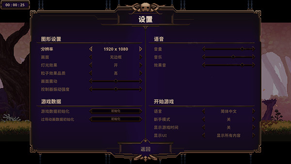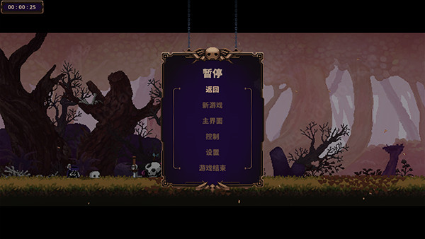 同时小骨英雄杀手当中二头身的主角与悠扬的音乐,搭配上暖色系的滤镜与明亮的背景设计,让你化身骷髅却不觉阴森,反而有一些沐浴在阳光下的温暖,悠扬的小调与精致的像素场景相得益彰,你甚至会怀疑自己进入了某个童话故事的世界,除了你是个骷髅外。并且,游戏当中无厘头的风格与诙谐的氛围,再者出色的战斗打击感与游戏核心玩法想切换,相辅相成成就了主角利用切换头颅的机制,快速完成各种连击,虽看起来花里胡哨,但实际上手的操作简单无比,而且时不时阵亡后,诙谐的提示页面,让不少玩家忍俊不禁大笑。