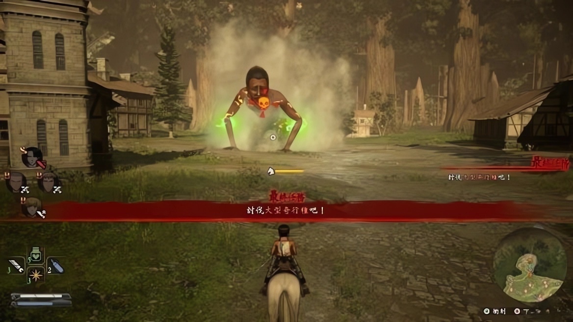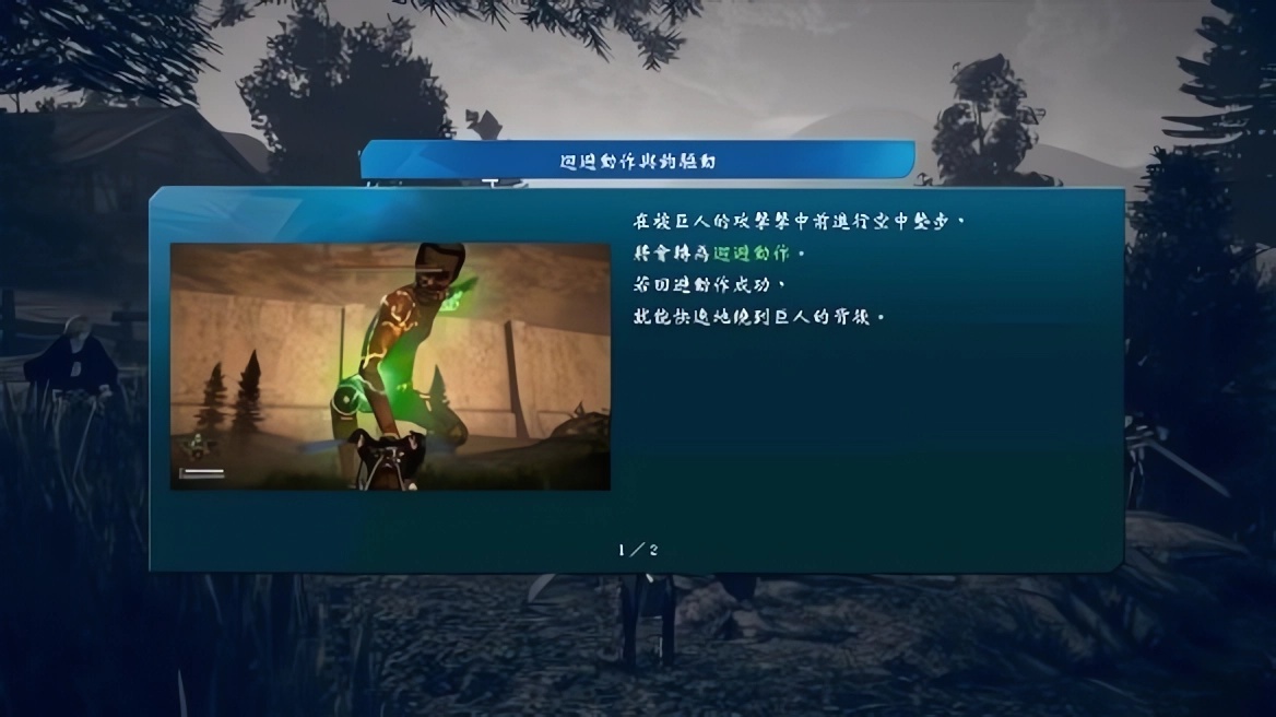 9、在被巨人攻击时按下Space将会施展回避动作,回避成功将绕至巨人身后展开一次威力强大的攻击。