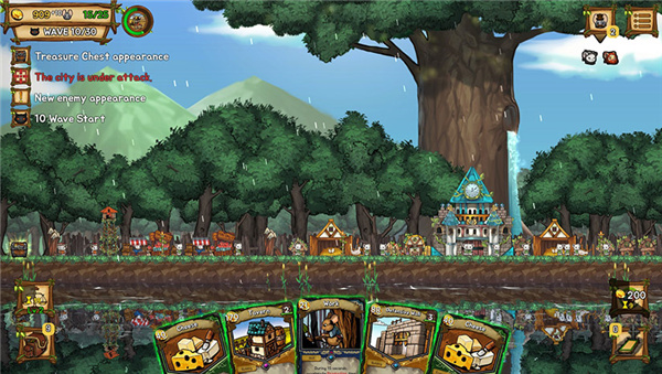 游戏的结构模式类似塔防,玩家需要使用金币与人口来构建防御工事阻挡敌人从左右两个方向的进攻(攻击时会有攻击提示),防御30波攻击即通关。