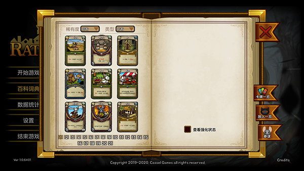 夜间城邦(Ratropolis)是一款玩法新颖有趣的单机卡牌策略塔防游戏,由Cassel Games独立制作发行。夜间城邦采用可爱的手绘风格,整体画面十分清新,搭配上各种策略卡牌玩法,致力于带给玩家全新的游戏体验。夜间城邦游戏背景是繁华的老鼠国度,玩家将扮演一个老鼠部落的领导者,你要维持族群的兴盛,建造繁荣的城邦,同时抵抗外族的入侵,保护你的子民免受野猫和各种怪物的袭击。夜间城邦游戏中包含经济、建筑、军事、技能等数百中独具特色的卡牌,合理运用卡牌在战斗起到关键作用,修复建造各种建筑,为城邦增加金币积累,提供很高的治疗效果,收集各式各样的卡组流派,防御一波又一波的掠食者和可怕生物入侵,解锁新卡以扩展您的选择,并使每项防御都成为新体验。另外,游戏还将卡牌和塔防配合rougelike要素完美相结合,让每次游玩都具备思考的深度和乐趣,让每一次的挑战都具备新鲜感。