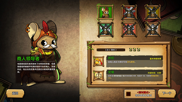 经济大师,初始角色,被动技能是买卖卡牌的时候拥有25%折扣,主动技能是丢弃身上所有卡牌获得3%的黄金收益,冷却时间60秒。