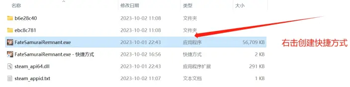 1、创建FateSamuraiRemnant.exe快捷方式,剪切到桌面。