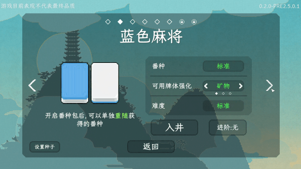 从超过四十种不同的麻将风格中汲取灵感,并制作成了不同的麻将机制。无论你是麻将新手、立直麻将玩家,还是国标麻将玩家,都可以在青天井里找到适合自己中意的牌组。定缺?没问题!宝牌?当然有!花牌?不用说了,我们应有尽有!