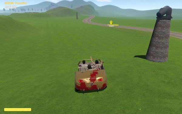 如果仅仅是开车乱撞,倒也不至于开个车把自己弄得血肉模糊肠子飞溅——这个另类开车(哦,是翻车)游戏的鬼畜之处就在于,开车路上总有着各种各样的陷阱,而这些陷阱也十分凑巧并恶意地被摆在了需要通过的黄色标记上。