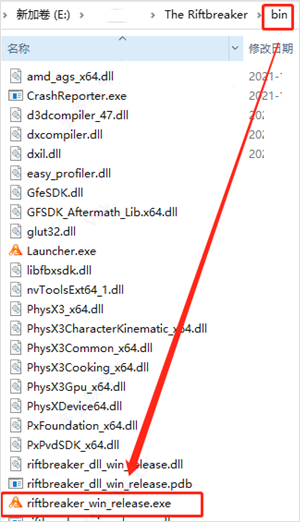 2、解压后选择:bin/riftbreaker_win_release.exe启动游戏