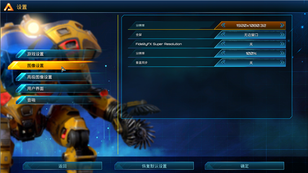 7、在图像设置中,可以对分辨率、全屏等进行设置;