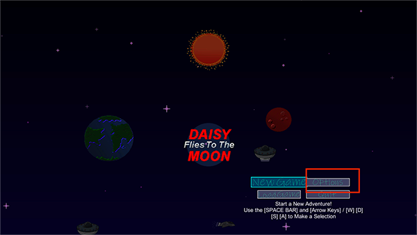 1、在游戏主界面使用【W】【A】【S】【D】选择"Options"。