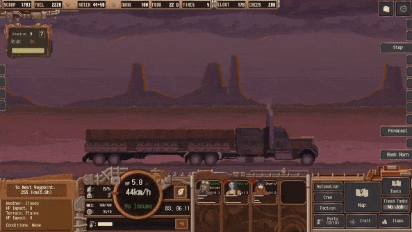 尘域配送,一般又称尘土快递,英文名为Dustland Delivery。这是一款结合生存、交易与策略元素的冒险经营类游戏。以末日世界为背景,玩家将在一个充满危机和机遇的废墟世界建立自己的贸易帝国。在尘域配送游戏中,玩家驾驶一辆可改装的货车,穿梭在僵尸横行的荒野中,需要召集不同的冒险家组成小队,以此确立贸易路线、控制资源的流向,努力将自己的城市建设成为尘土之地的首都。危险潜伏在每个角落——但没有风险,就没有回报,快来尘域配送游戏中体验一下吧