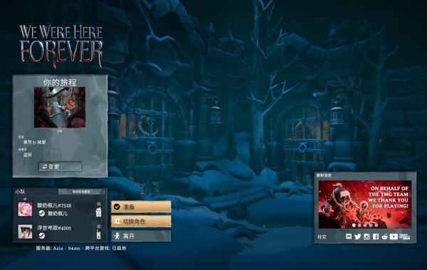 我们一起在这里(We Were Here Together)是一款双人合作冒险解密游戏,继承了系列作品以沟通为主题的冒险为主要玩法,在这次的冒险中,你将和伙伴去解救失踪的南极探险队,你们从营地出发前往城堡,穿越南极荒原,你和你的伙伴各佩戴了一个对讲机。在这款续作中,观察和交流是游戏的核心玩法,也是你们逃离这个险恶城堡的唯一方式。