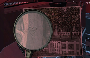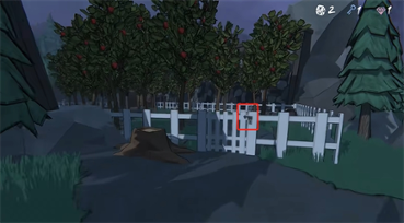 2、再次进入可以在角落找到苹果园的照片,有放大镜就可以看到树干上爱心里有日期1128。
