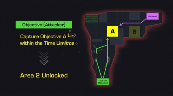 4、通过控制区域 1 中的目标 A,攻击者将解锁包含目标 B 的区域 2。当这种情况发生时,他们的突击区的位置将会改变。