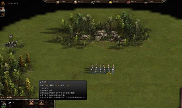 资源:在屏幕上方显示六种重要的资源,分别是木材、粮食、石头、金钱、铁矿、煤产。