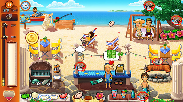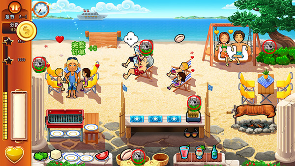 美味餐厅9:艾米莉的蜜月之旅(Delicious: Emily's Honeymoon Cruise),在众多玩家的期待盼望中,由Zylom并由GameHouse发行,这是一款优秀的模拟经营类游戏,但同样非常重视游戏的主题和故事背景,本款游戏的主题是蜜月旅行,所以,玩家的目标就不止一个了,不仅要在经营餐厅的过程中让顾客开心,也要让这场蜜月旅行的主角艾米莉感受到婚姻的甜美温馨。首先,画风依旧是熟悉的卡通风格,但画的更加的细腻、清晰了,游戏场景有的是在游轮上面向大海,有的是在沙滩上沐浴阳光,非常的悠然自得,让玩家们感到轻松悠闲,非常的舒服。