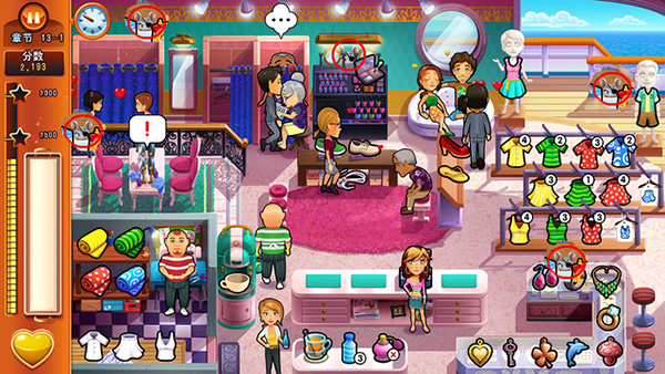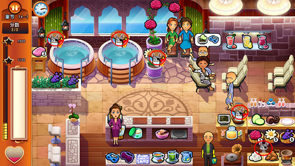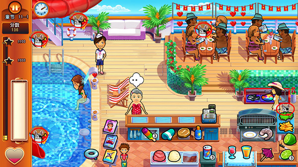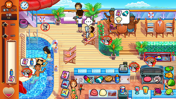 1、玩法内容:继承了前几部的玩法,多种餐厅类型让玩家经营,全新的关卡挑战,以及添加了很多附加关卡。2、场景:主角展开她的蜜月之旅,也不忘继续经营她的餐厅,在游客非常多的游轮上、沙滩上等其他地方,开始经营日常。
