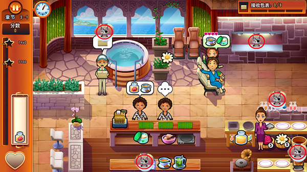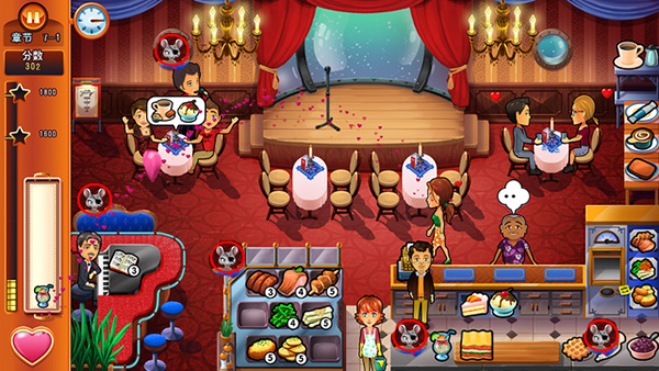 2、新手玩法:开始营业的时候就招待情侣,开始的时候会有一位顾客,马上招待情侣,这样第一次就轻松用掉了,在中期顾客不多的情况下招待情侣,也可以顺便刷连续上菜分数,最后结束营业的时候招待情侣,顾客人数不多的情况下,轻松招待情侣获得星星,此方法主要免去了打乱你上菜的节奏,新手推荐使用。