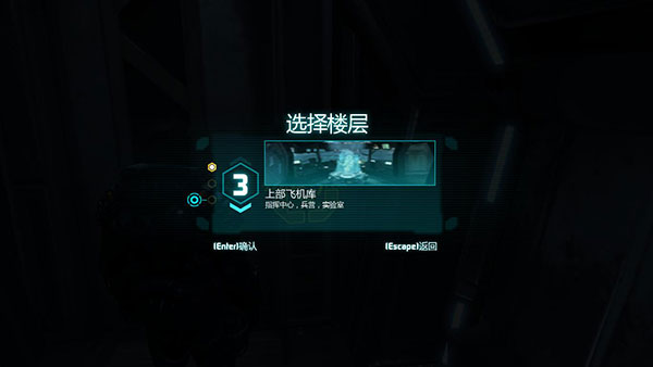 step2.按照路线提示进入电梯,搭乘电梯前往二层——机甲港口(机甲出动夹板),在加尔的指挥下,佩顿的机甲在灯光照耀下被推动出来,然后加尔介绍了自己加入机甲内上的快速升降器。