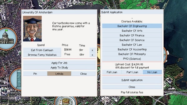 与其他同类型的金融类模拟游戏相比,打工族的一生拥有别具风格的城市地图,其基于欧洲航天局的卫星图像,游戏地图根据真正的大城市制作,并家庭抢劫、热狗饮食比赛、蒸汽销售等特别活动可供玩家选择。此外,玩家还要注意哦打工族的一生完全依照现实的世界而设定,通货膨胀、利率和经济增长会影响你的投资和就业竞争。
