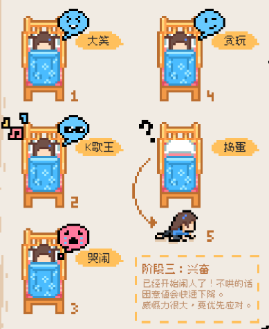 已经开始闹人了!不哄的话困意值会快速下降。威慑力很大,要优先应对。