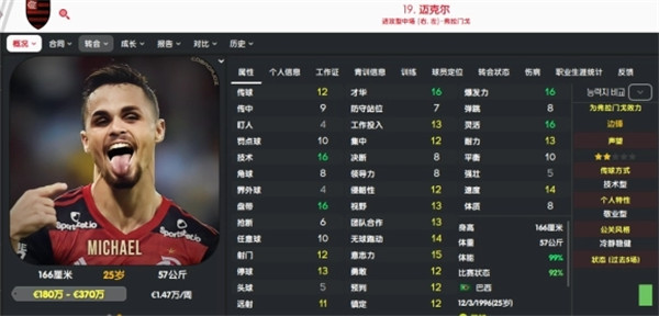 巴尔韦德和卡马文加这俩特好用, 米林科维奇+阿尔贝托,对拉齐奥这两中场有阴影,现实中还是德布劳内。中场就爱米林+巴雷拉双全能,南安普顿的大普,角球任意球耐力全20 传球视野15以上。