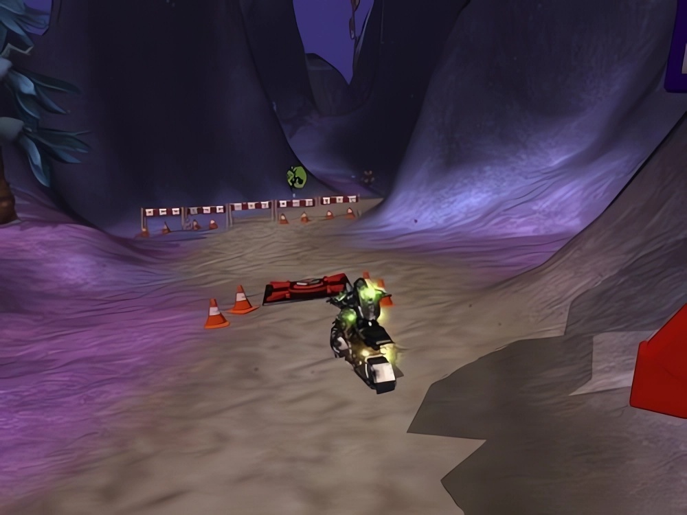 3、虽然没有办法赚取冒险点数,但游戏方式却相当有创意。一般的任务,不外乎就是与NPC对话,打倒怪物,比较类似在玩角色扮演;但这个任务,把大家习惯「角色扮演」变成了「动作竞速」!你的「舰长」不再必须四处寻找对话对象,而是驾着一台机车来场惊奇的越野赛。你的敌人不再拿着武器追着你打,而是变成了充满挑战性的赛道。