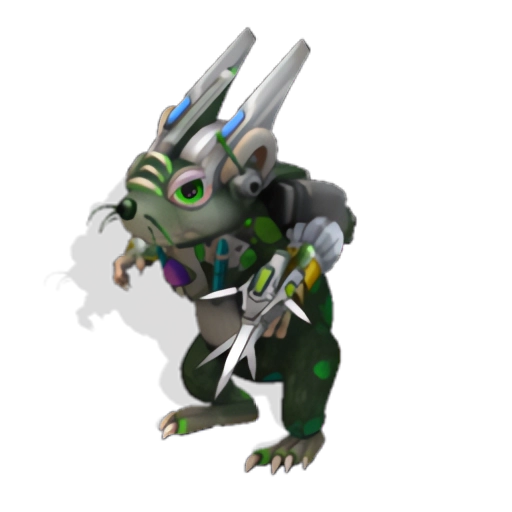 又名拉提~鼠PORE特务任务的主角~名字的由来便是老鼠和辐射的结合~由于出身时受到辐射污染的缘故所以身上有一部分被染绿~但很幸运地存活~智力与体力都大幅提升~得到成为特务人员的资格~目前还是个新手~但个性冷静且具良好判断力~左手上佩带有高科技的闪电刀刃~正好搭配他皎洁的身手。