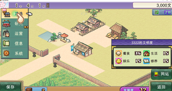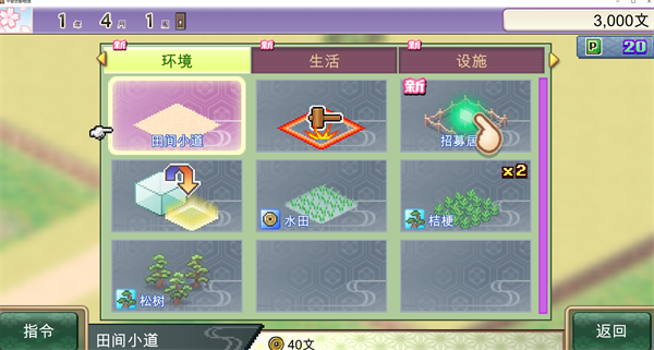 3、丰富的建筑与设施游戏提供了多种建筑选择,包括农家乐、五层宝塔、町屋、武士屋敷、神社、温泉旅馆等,每种建筑都有独特的功能和收益。