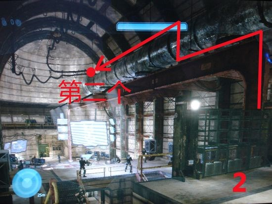 进行到第一次开阔地,(下面有两辆猫釉) 然后往前开,前面会遇到星盟的几个战车还有幽灵,继续向前,一片大开阔地,远处有斜坡上去。上去后往前开可以从右边下去并开始看到有三根大横梁的建筑,清理到两个幽灵从右面的斜坡跳上大建筑的平台。走到最后一个横梁处,骷髅在横梁中间。需要借炸弹来跳上去。或者三人合作,叠罗汉。