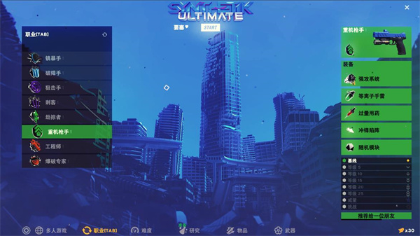 你可从8种独特且可定制的角色专业范畴中选择你的专业范畴,虚实之间军团崛起有防暴警察、爆破专家、狙击手、刺客、劫掠者、重型炮手、工程师及毁坏者,每个角色有其专属的武器、装备、优势及技能加点。即使你死亡,你也不会失去你已解锁的角色